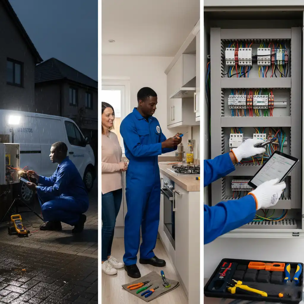 Our 24/7 callout electricians can typically reach your location within 30–60 minutes.